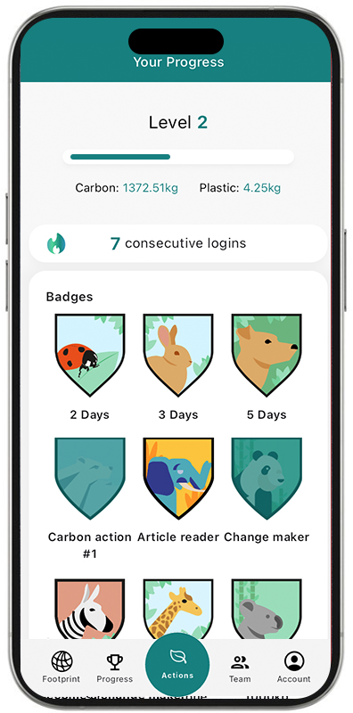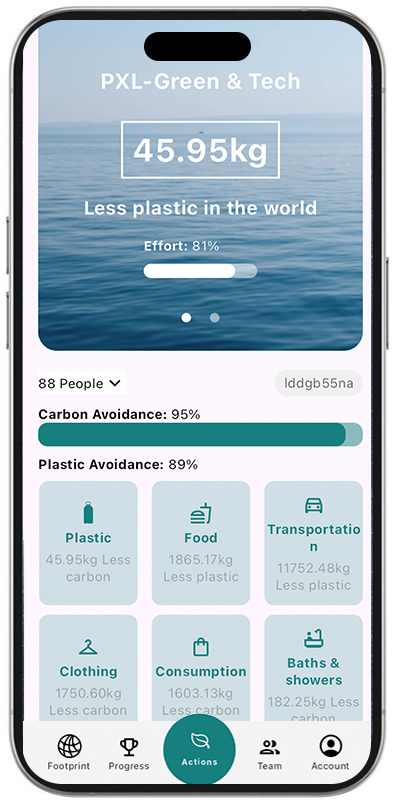 The EarthProject app, developed by TAG, is a unique tool that quantifies the environmental impact of individual and collective actions. The app translates efforts into measurable outcomes, such as the amount of carbon avoided, reduced, or removed, providing users with tangible feedback on their contributions to combating climate change. Once actions have been taken, the user can see the amount of carbon avoided, reduced, and removed by taking those actions.