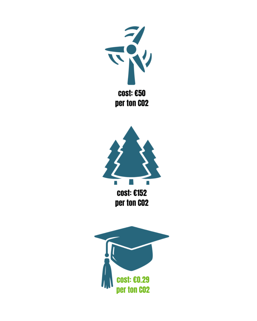Investing in climate education offers a high return on investment by reducing emissions, promoting economic sustainability, and preparing a workforce equipped with essential green skills. Studies indicate that educational initiatives can reduce CO₂ emissions at a lower cost per ton than many technological solutions. Climate education fosters behaviors—like cycling, adopting plant-based diets, and improving home energy efficiency—that benefit both the environment and personal finances.